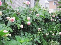 レイニーブルーとピエールドゥロンサールの意外な競演 つるバラと宿根草の小さな庭づくり